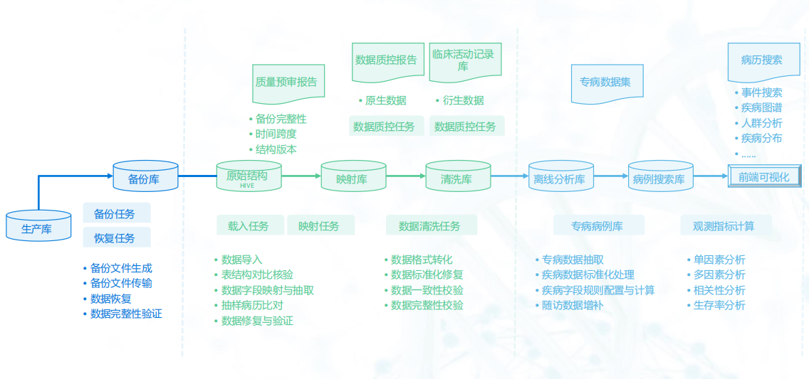目前已经简称白血病专病库、肺结节专病库、早期肺癌专病库、针灸专病库、脑卒中专病库、骨科专病库等40多个中西医专病库,服务国内30多家医院和临床研究中心。