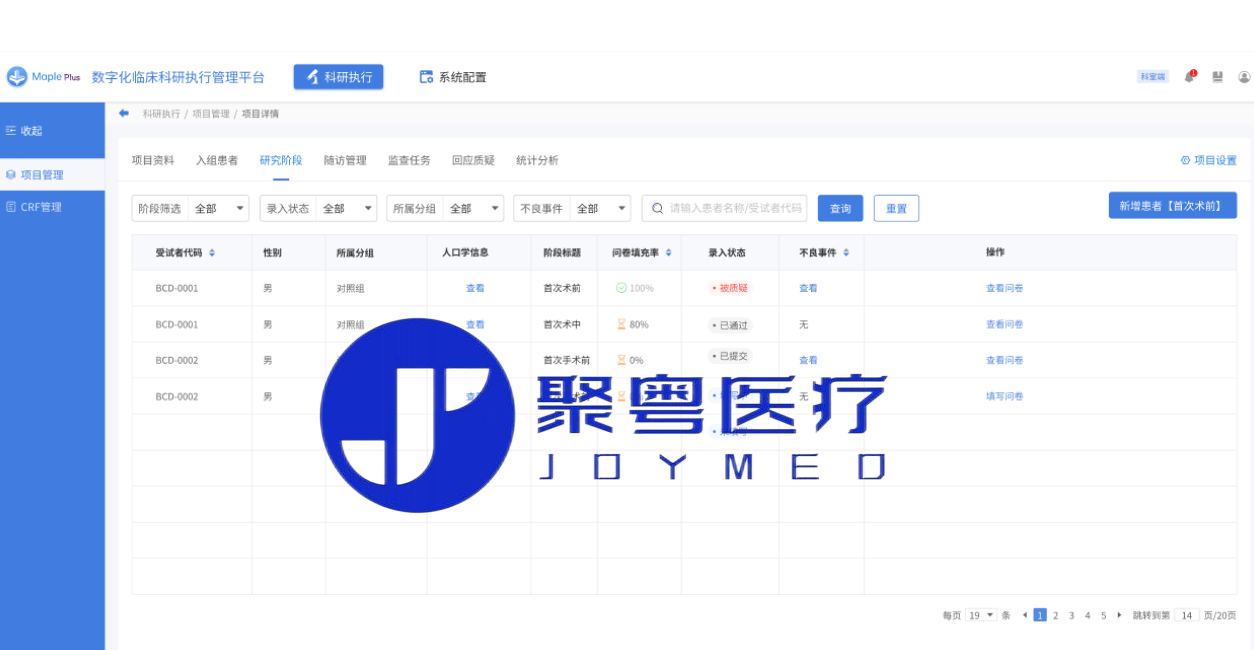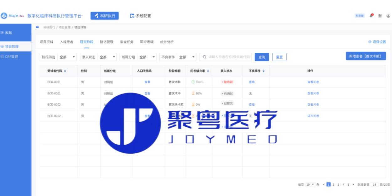 聚粤医疗旗下专业的临床数据收集系统—牛蛙科研,支持SaaS和本地化部署,能满足医生个人和医院科室发起的临床数据收集需求和科研项目管理。有满足个人和小团队使用的免费版本,也支持定制化的专业团队版本。