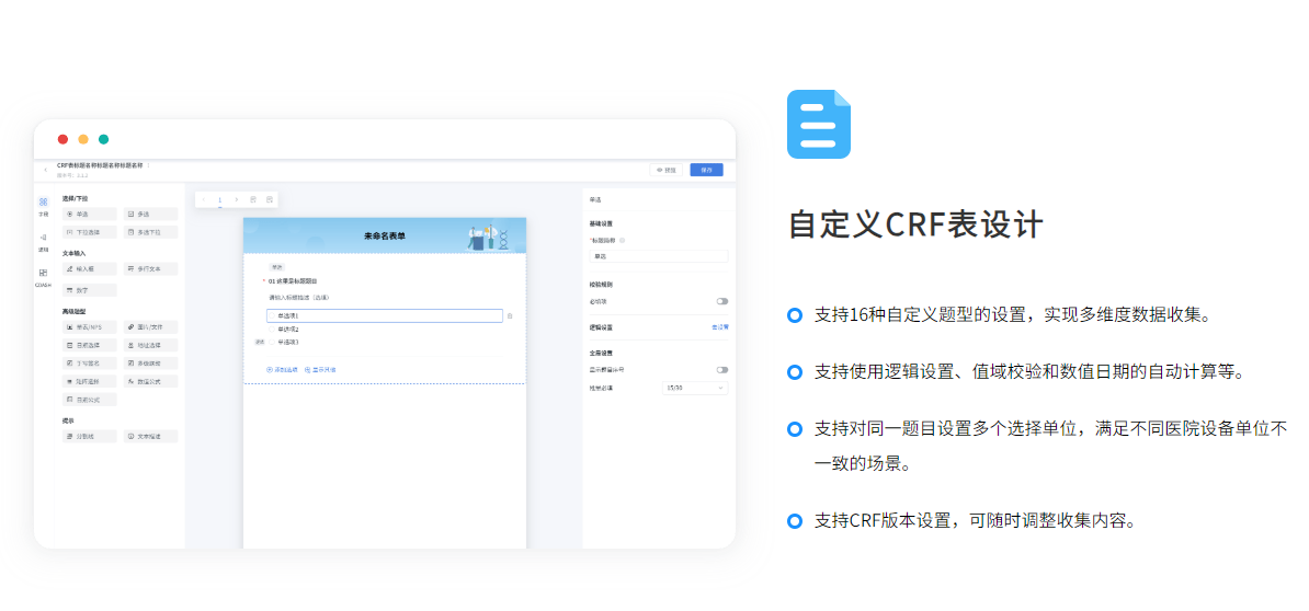 专为国内的医生、科室、临床研究中心、药企药物上市后真实世界研究(RWS)等开展临床科研而设计,功能全面,对医学生、医生个人提供免费版本,助力研究者低门槛、高效率开展临床研究。