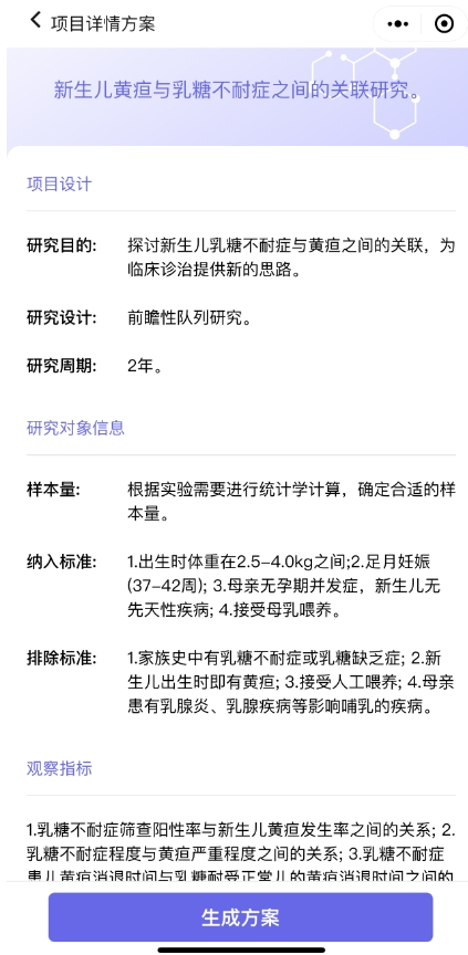 针对于国内的临床研究,聚粤医疗基于国内医生研究的需求,推出“NEWWA”——新一代基于人工智能的临床研究数据平台。基于大语言模型,仅需三步,通过关键词或者短句,结合当下热门的研究方向以及文献,生成高质量临床研究课题方向和试验方法。无需安装程序或客户端,网页端直接使用,一键启用CRF,拖拽式编辑,像使用Word一样,轻松开展临床研究。