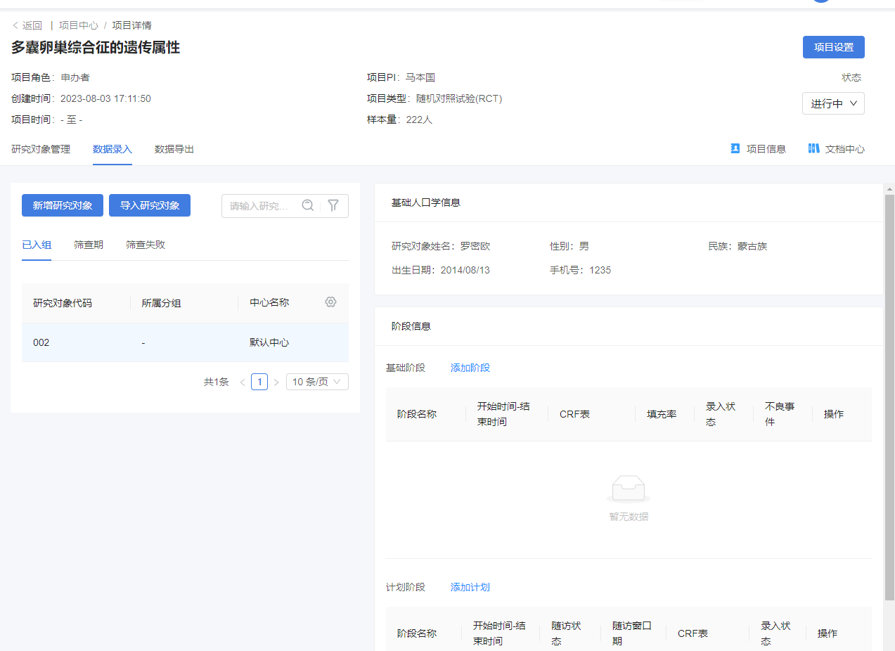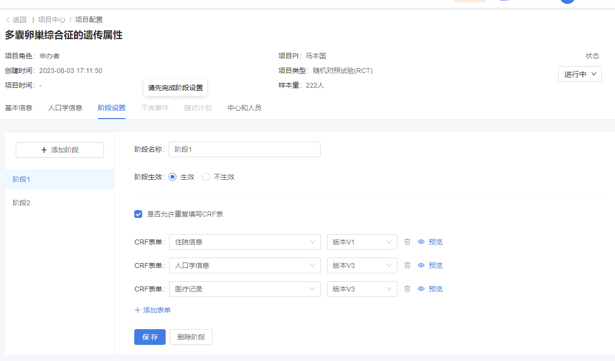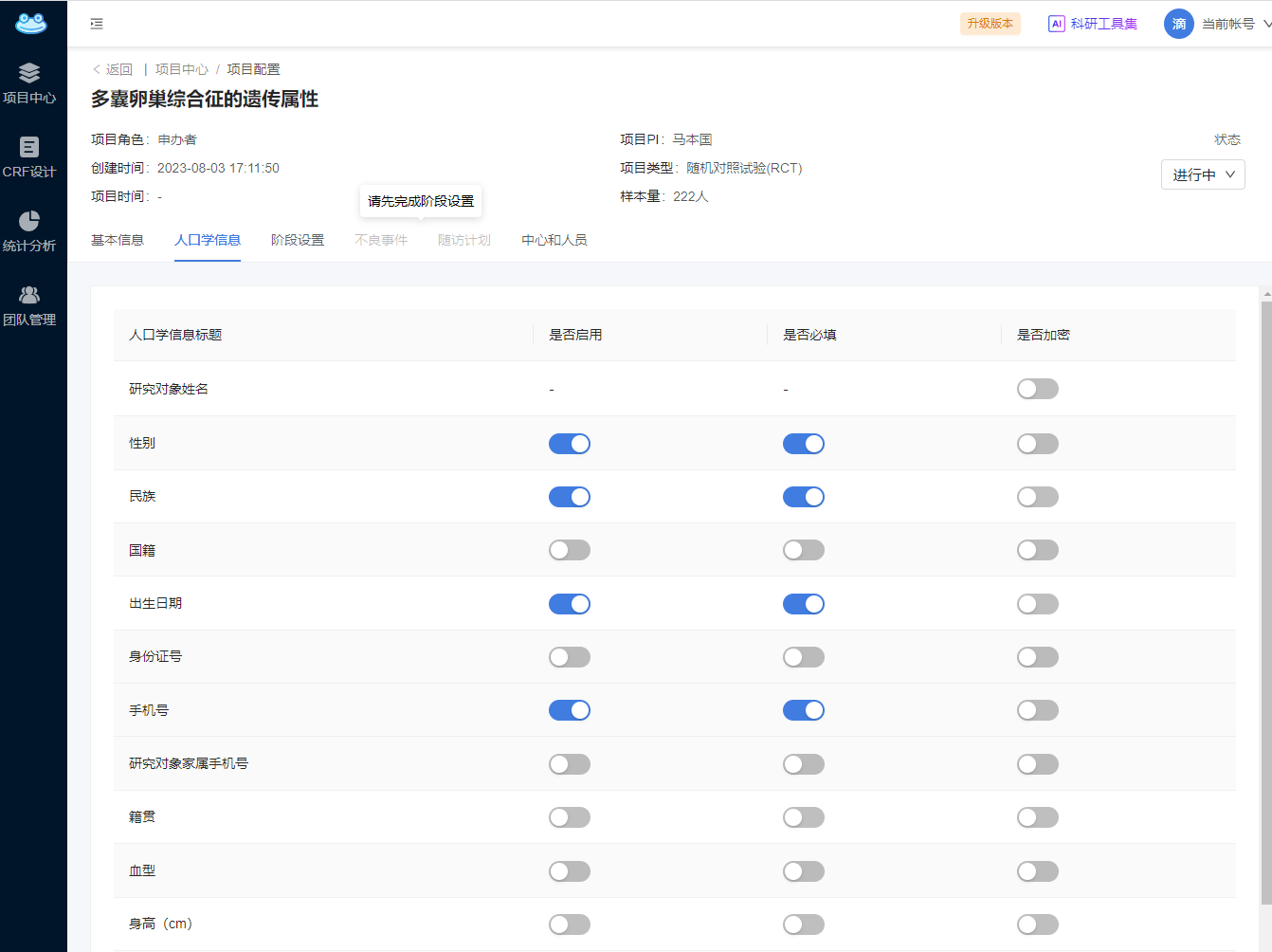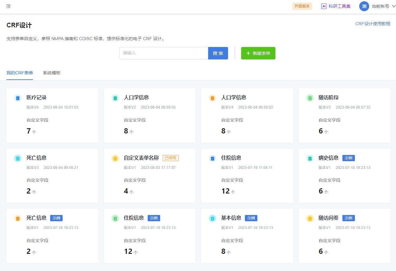 1、数据收集。自定义CRF,也可以一键导入CRF。