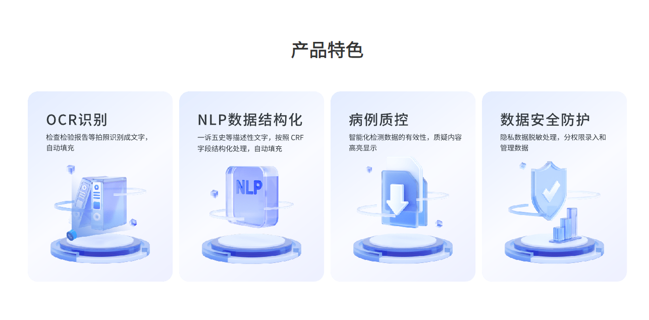 6、OCR识别录入。自研高准确率OCR方案,对于检查检验单等,拍照识别,大幅提升准确率和录入效率。
