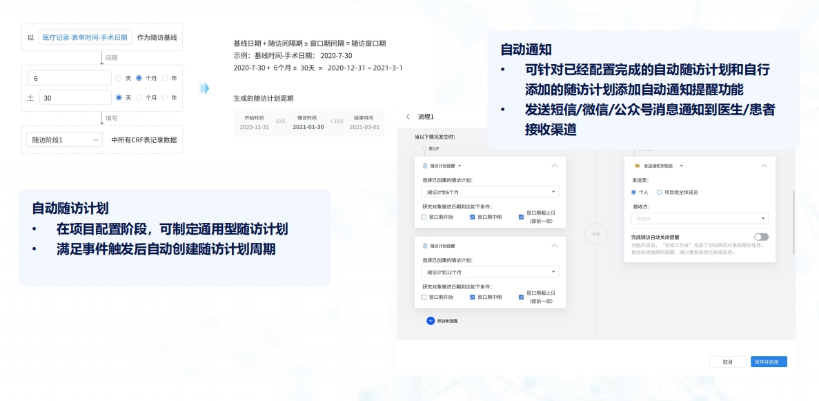 实现随访任务的自动分配和提醒,确保科研人员和患者按时完成随访工作。