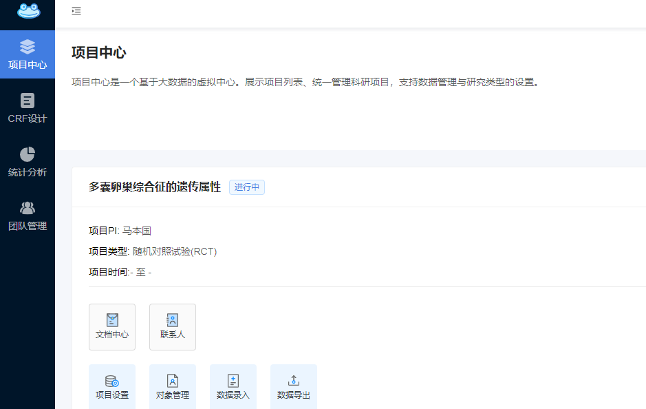 2、团队和项目管理。配置项目人员,多中心协同录入。