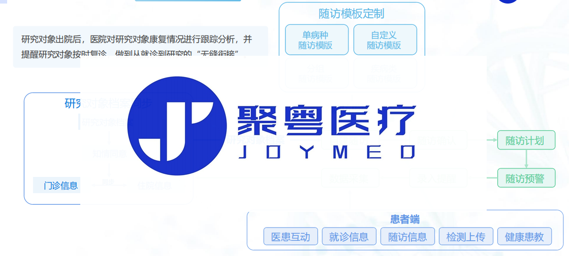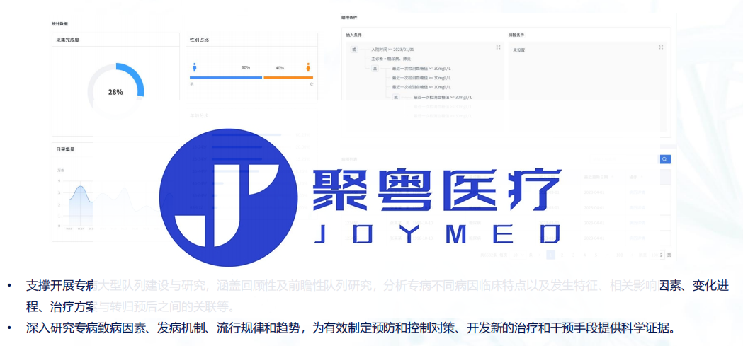 聚粤医疗深耕医疗行业多年,专注于“AI+医疗”的应用,是国内最早提供专病数据库及临床研究全流程解决方案的服务商之一,目前已经服务国内30多家大型医院。聚粤医疗从实际临床研究应用为出发,以医生、医院为中心,基于人工智能的NLP技术和大数据技术,通过对全院临床数据的结构化和归一化治理,为他们建立了多个病种的专病专科数据库,比如糖尿病专病数据库,中医专病数据库,肺癌专病数据库,肺结核专病数据库等26种专病库,协助医院已经产出40多篇高质量SCI论文及成果的推广应用。
